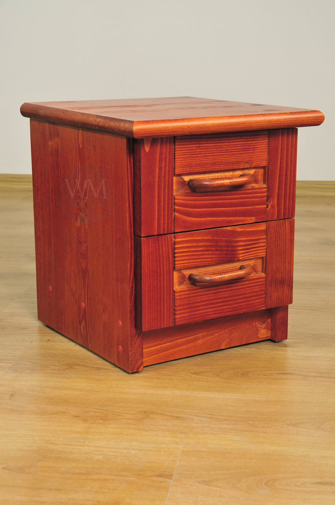 Noční stolek je vyroben z kvalitního smrkového dřeva. Jde o perfektně provedený nábytek s dokonalou povrchovou úpravou, nalakovaný bezbarvým ekologickým lakem.